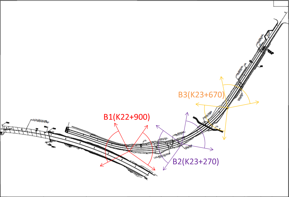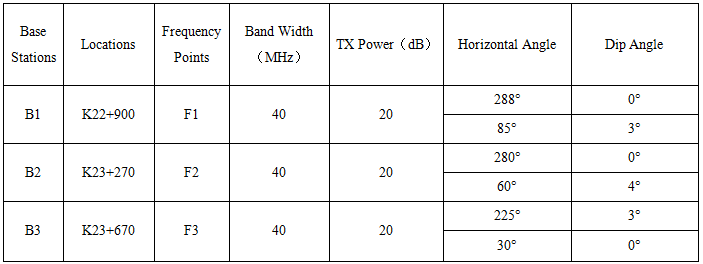 According to the analysis of the test section design drawings, the terminal considers the earthwork shield in the bend, three base stations has been constructed in K22+900, K23+270 and K23+670. Considering the bend shield, the base station has been built on the outside of the bend. The base station pole height is 12 meters, and the equipment mounting height is 10 meters.