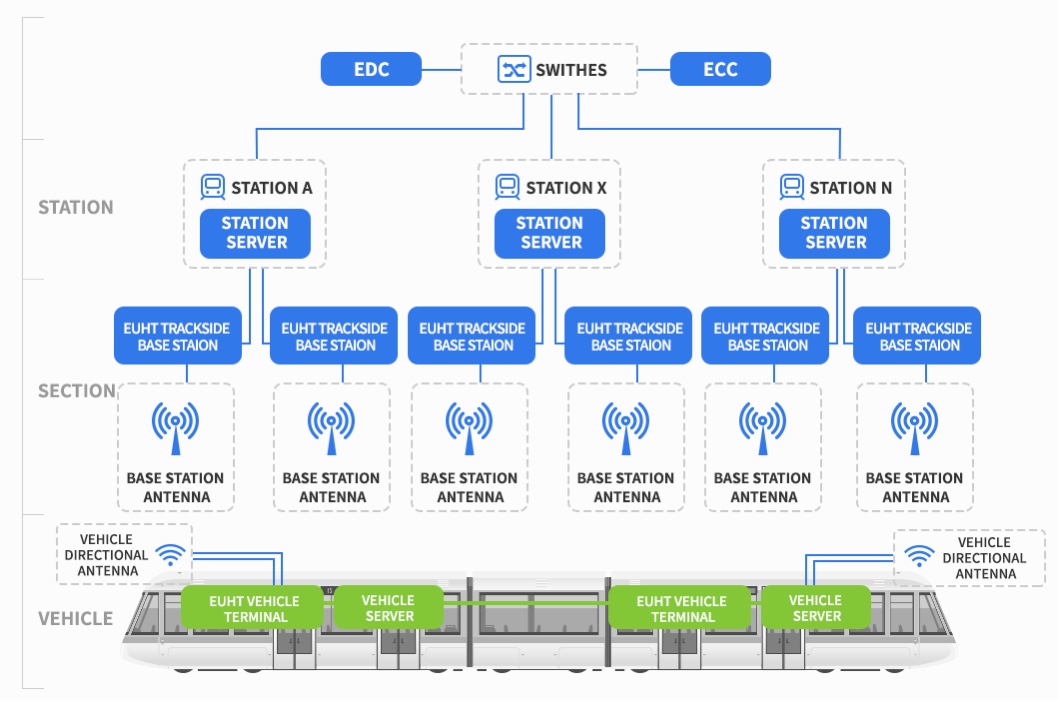 The EUHT Smart Metro Solution is the world's first high-reliability, low-latency, low-cost vehicle-to-ground wireless communication system that supports high-definition CCTV real-time transmission (more than 30 channels), CBTC, PIDS, passenger Internet access and digital trunking.