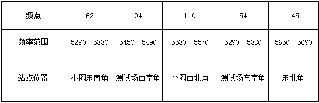 站點位置主要以場地4個角落為主,由于演示需要兼顧小圈覆蓋62號站設立在小圈的東南角位置,具體分別如下圖所示: