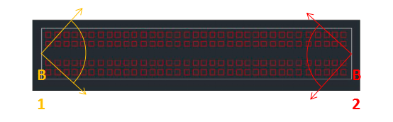 根據廠房平面圖,長135米,寬20米,覆蓋區域內部署了136臺機床,中間留有過道,供行人、物料運輸通過。空間高度10米,機床上空有足夠的空間,車間兩端安裝中心接入設備,中心接入設備通過千兆以太口與車間有線生產網絡連接。覆蓋區域設計安裝2臺中心接入設備,扇區覆蓋圖如下。